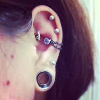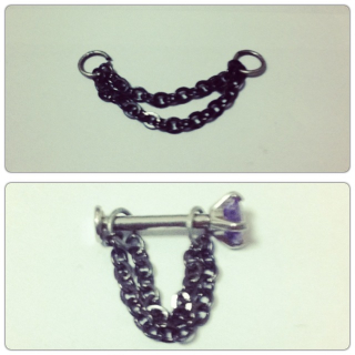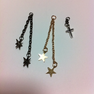自作ピアスチャーム製作 ハンドメイド Comment:0 2013/07/19 リングに通してホールトゥしてみたり、バーベルに通してロブやコンクからぶら下げられるチャーム造りが今楽しいです。着脱も割りと簡単なのでコーディネートを変えたいときにこんな感じで遊んでいます。常時装着には向きませんがお出かけくらいなら大丈夫。作り方は簡単。チェーンを適当な長さに切って先丸ペンチと丸カンでパーツを取り付けて完成。これだけです。センスが無いので似たようなデザインばかりですが工夫すればかなりおしゃれなチャームができるはず。以前にも触れましたがもちろんストラップなりキーホルダーなり別なものとしても使える(というかもともとそのパーツの流用)のでたくさん造っては余らせを繰り返しています。これは派生で二本のチェーンの両端を丸カンでつなぎ一本のバーベルに通したもの。Instagramの画像を見てインナーコンクにチェーンってかわいいと思ったので造ってみました。が、装着が大変。実用には向きませんがコンクをタイトなチェーンで縛っている感じがなかなか気に入っています。BAFにこんなチャーム製作におあつらえ向きのボールが売っていたのでもっと面白い発想のチャームを造れないか日々頭をひねっています。(Threaded steel ball with hoop $0.99) http://rbrt.kuizu.net/handmade/%E8%87%AA%E4%BD%9C%E3%83%94%E3%82%A2%E3%82%B9%E3%83%81%E3%83%A3%E3%83%BC%E3%83%A0%E8%A3%BD%E4%BD%9C自作ピアスチャーム製作 [2回]