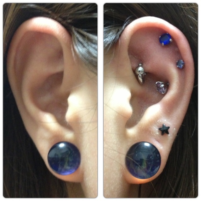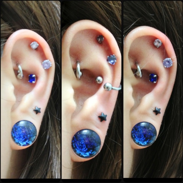 夏色ピアス ピアス Comment:0 2013/06/14 夏っぽいコーデを模索していろいろと耳を弄ってみました。ジュエルは全部JEWEL’Sさんのファセットプロングラブレットを使っています。ロブの★はHOMESLICE PRODUCTIONSさんのブラックスターラブレット3mm。5mmくらいあったほうがかわいいかな、と思って買い直そうとしたら売り切れでショックでした。黒い星のピアスってなかなか売ってない。今回新しく購入したのはブルー5mm、タンザナイト5mmの2色。GalaxyのBlueで夏っぽいコーデをしてみたくて青系を買いました。ブルーはかなりはっきりした発色でGalaxyよりも鮮やかな感じです。タンザナイトは一瞬クリアかな?と思うような色ですがよく見るとほんのり青みがかっていて綺麗なのでお気に入りです。そして石の大きさで全然色が変わってきます。左から3mm、4mm、5mm。3mmは濃い青紫ですが4mmから急に淡い色合いになります。個体差もあるかもしれませんがこの4mmは特に薄い色で遠目にはほぼクリア。5mmは石が大きい分多少4mmより発色がいいです。一番好きな色かも。石物を着けるのが好きで数は結構あるのですが石ばっかりだとごてごてした印象になってしまうのが気になります。今まで買ったことがなかったのですがやっとどのホールも安定してきてつけかえできるようになったのでチタンのカラーボールなんかも集めてみたり。それでPPでチタンボールを購入したのですが2個以上買うと1個のときより割安で買えるということに気づかず全部1個ずつオーダーしてしまいました。1個だと1.25$のところが2個以上だと何個でも0.75$。これはお買い得。でもちょっと悔しい!手持ちのバーベルとネジがあうかどうかだけが心配です。 http://rbrt.kuizu.net/pierce/%E5%A4%8F%E8%89%B2%E3%83%94%E3%82%A2%E3%82%B9夏色ピアス [1回]